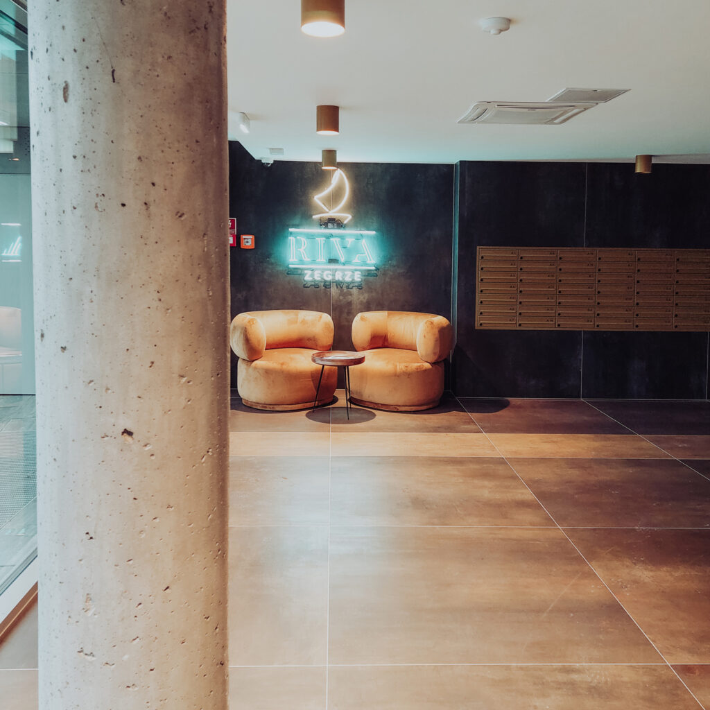 Projekt wnętrz części wspólnych w prestiżowej inwestycji Riva Zegrze